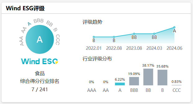 環(huán)境、社會(huì )及治理表現均高于食品行業(yè)平均水平