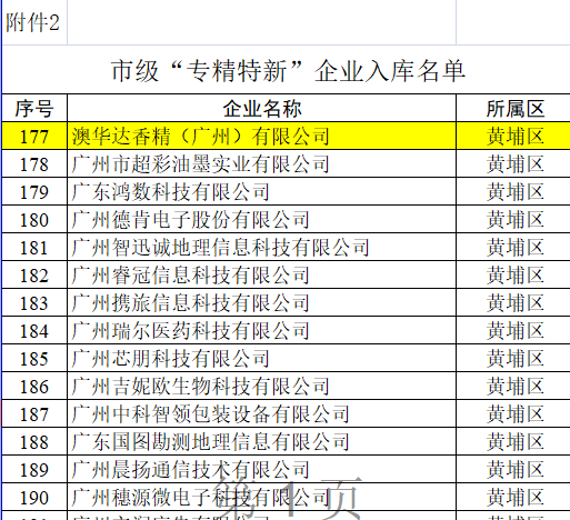 近日,廣州市工信局印發(fā)了市級“專(zhuān)精特新”(兩高四新)“企業(yè)(第五批)入庫名單的通知。澳華達香精(廣州)有限公司被納入其中。