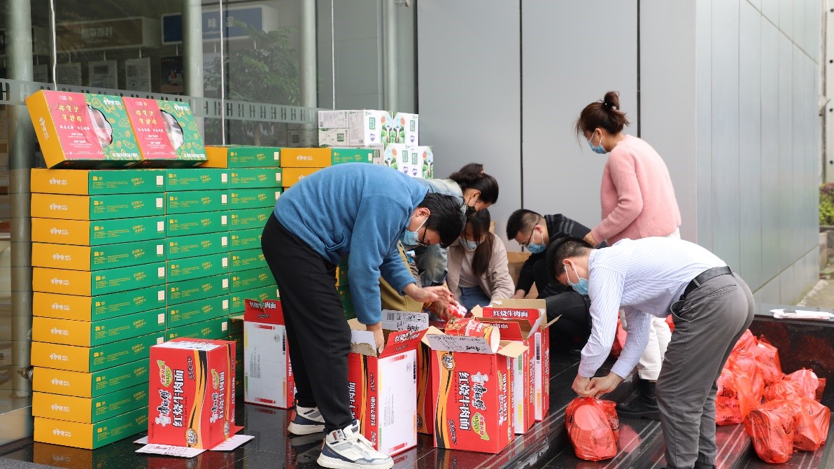 防疫工作開(kāi)展以來(lái),考慮到公司員工出現生活物資采購難的問(wèn)題,為切實(shí)保障隔離區員工的生活,華寶股份上海園區聯(lián)合工會(huì )積極發(fā)揮工會(huì )組織凝心聚力、服務(wù)職工的作用,給公司宿舍員工準備了牛奶、面包、方便面、水果、雞蛋等生活物資,為隔離期間的員工送去愛(ài)與關(guān)懷。