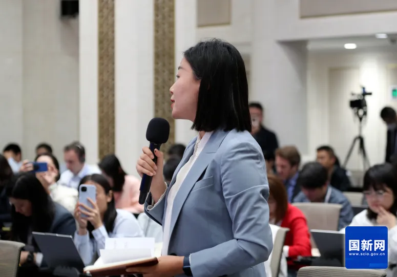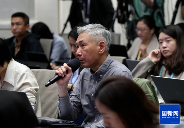 中央廣播電視總臺央視記者提問(wèn)(趙一帆 攝)