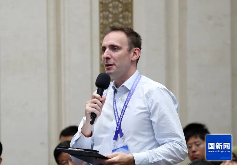美國國際市場(chǎng)新聞社記者提問(wèn)(趙一帆 攝)